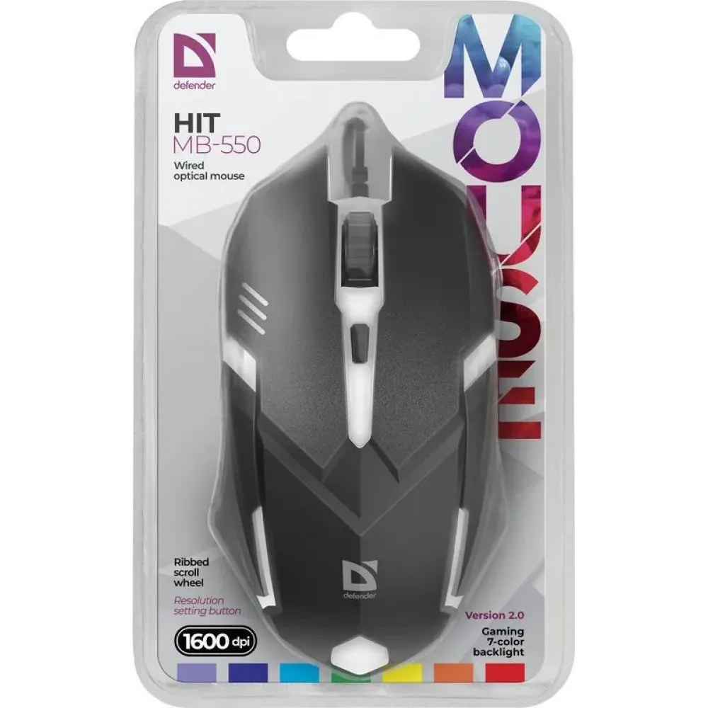 Мышь проводная Defender Hit MB-550 стала обладательницей оптического сенсора с высоким разрешением, который гарантирует невероятную четкость при наведении курсора. Для подключения данного аксессуара к вашему ПК или ноутбуку достаточно воспользоваться соответствующим USB-разъемом.