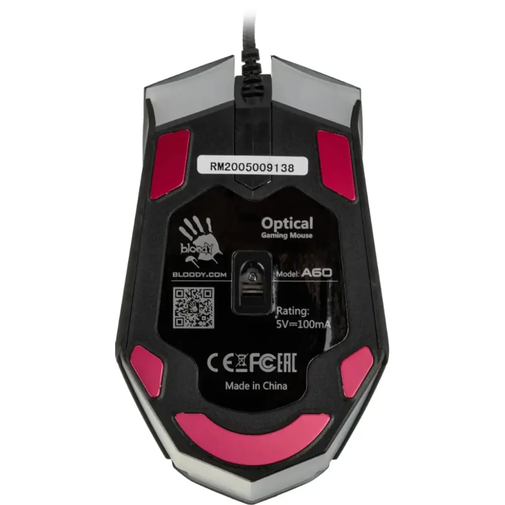 Длина провода равна 180 см, что обеспечивает достаточную свободу движений на рабочем месте. Мышь A4 Bloody A60 оснащена качественным оптическим сенсором с разрешением 4000 dpi и регулируемой чувствительностью. Она неплохо покажет себя в компьютерных играх, особо требовательных к точности манипулятора. Устройство оснащено 7 программируемыми кнопками и колесом прокрутки.