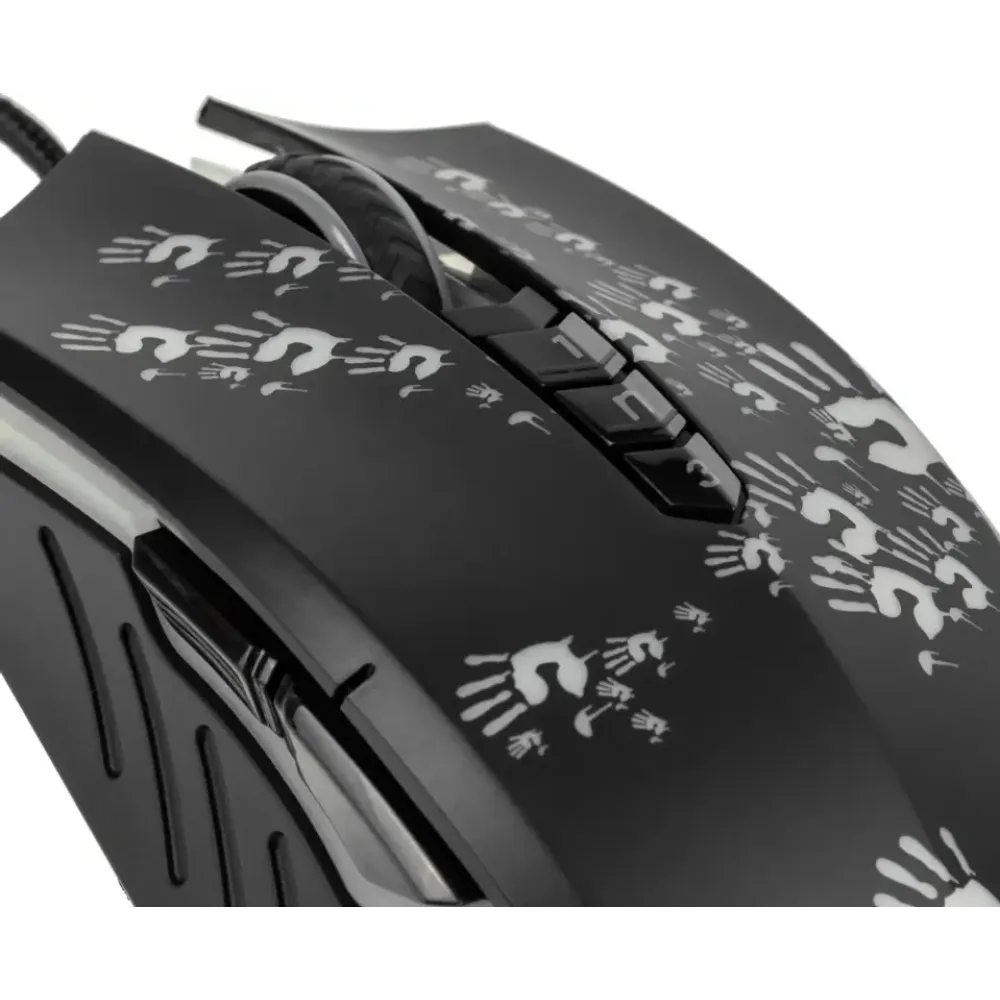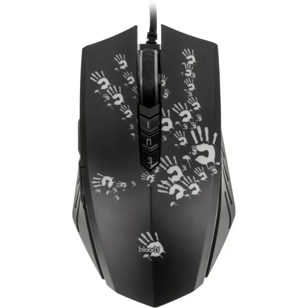 Хорошим выбором для домашнего и офисного компьютера станет оптическая проводная мышь A4 Bloody A60. Она имеет удобный и эргономичный дизайн, предназначенный для управления правой рукой. Черный корпус украшен ярким цветным принтом в виде ладоней. Для подключения к системному блоку или ноутбуку мышь использует стандартный порт USB.