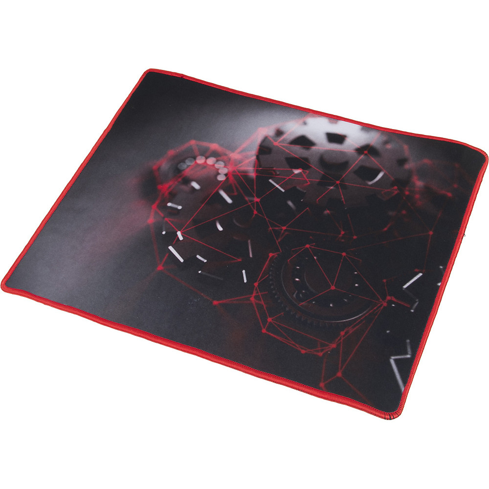 Коврик для мыши OKLICK OK-F0350 с объемным принтом в серо-красных тонах и надежной обшивкой создан для комфортной работы за компьютером и оптимально подходит для экшен-игр.