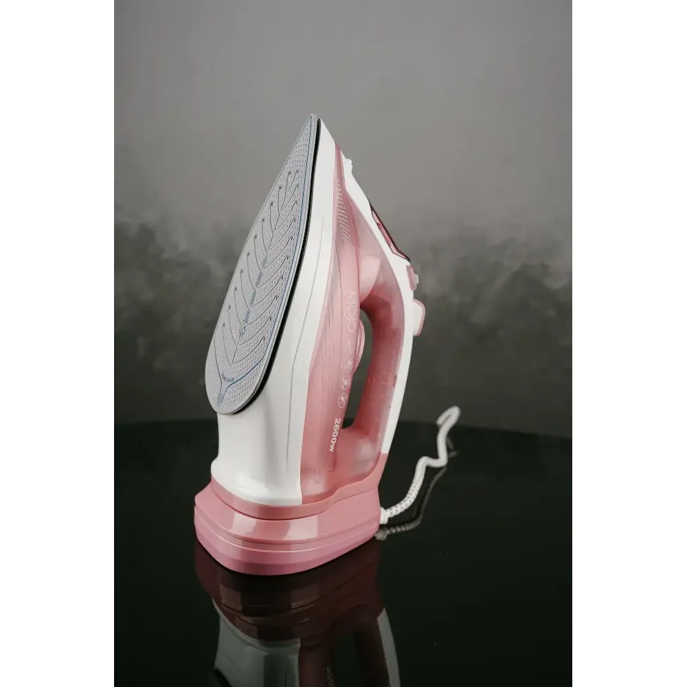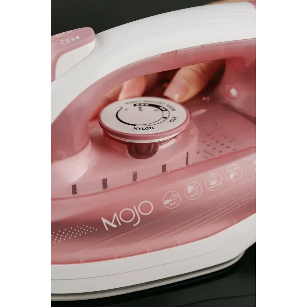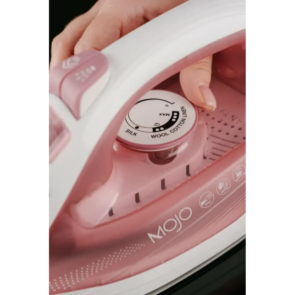 Паровой утюг MOJO обладает мощностью 2600 Вт. Отличие утюга в том, что использовать его можно, как с проводом, так и без. Переключение между режимами, происходит за 1 сек, через переключатель, расположенный на базе. Утюг будет сохранять заданный вами уровень тепла, на протяжении 40 сек, этого времени хватит, чтобы отгладить всю площадь белья, разложенного на гладильной доске. Пока вы будете выкладывать на гладильной доске ещё не глаженый участок ткани, утюг на базе, всего за 5 сек, наберёт нужную температуру и вы продолжите глажку. Все функции, паровой удар или непрерывная подача пара, в беспроводном режиме полноценно работают. Высокопрочная керамическая подошва остаётся гладкой, благодаря устойчивости к механическим повреждениям. Регулятор режимов позволяет подобрать необходимую температуру для определенного типа ткани. А благодаря индикатору нагрева, вы всегда будете знать, когда утюг для одежды готов к использованию. Паровой утюг легко справляется с глажкой любых тканей за счёт применения функций разбрызгивания воды и мощного парового удара 140 гр/мин.