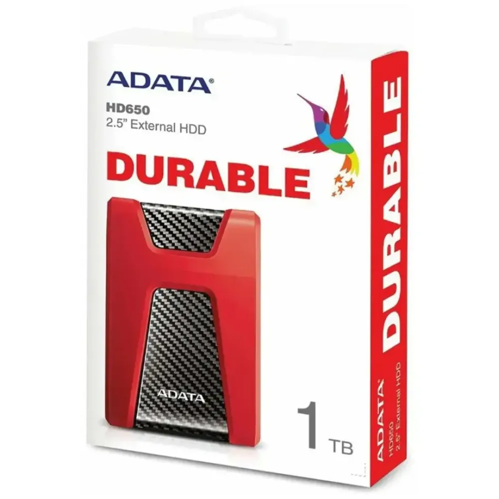 Внешний HDD A-Data HD650 - портативный накопитель с запоминающим устройством 2,5 дюйма, разработанный для хранения данных с высоким уровнем надежности. Объем 1 ТБ позволяет разместить большое количество различного контента, который всегда будет под рукой. Трехслойная конструкция корпуса HDD A-Data HD650 с прорезиненными амортизирующими вставками гарантирует устойчивость устройства к повреждениям при ударах и падениях. Также предусмотрена защита от пыли и влаги.